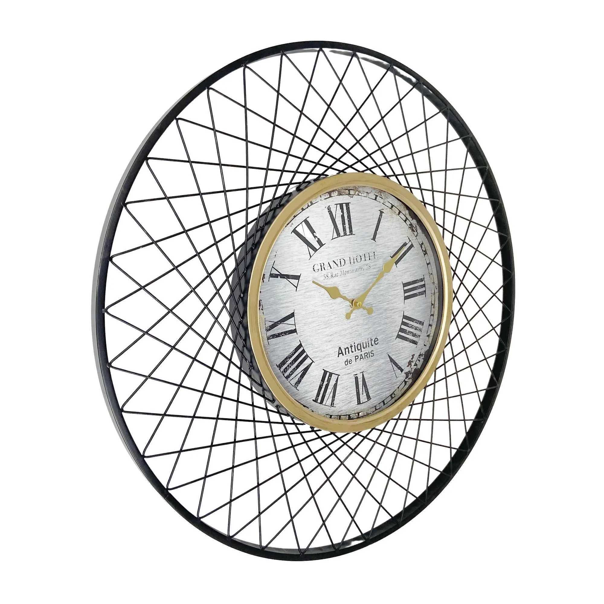 Construcția robustă din metal asigură durabilitate și stabilitate, făcând ca produsul să reziste în timp fără a-și pierde aspectul elegant. Forma rotundă clasică este reinterpretată într-o manieră modernă, cu marcaje și cifre ușor de citit, astfel încât timpul să poată fi urmărit intuitiv, fără efort.